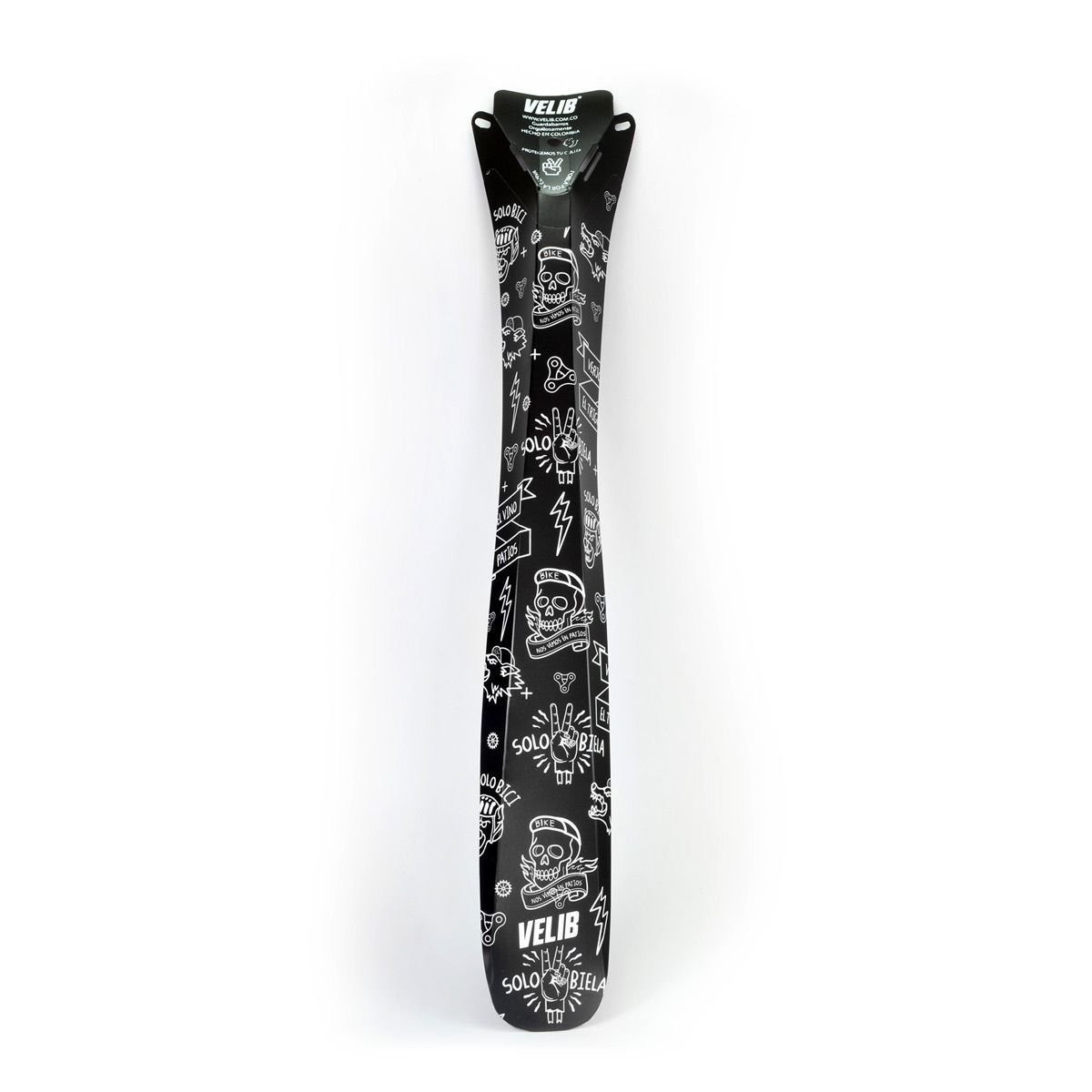 Es el guardabarros preferido por los ciclistas. Está diseñado con pliegues únicos de proporcionan un corte aerodinámico y lo mantienen alineado a la rueda trasera. Se asegura a la bicicleta con dos correas de velcro, especialmente adaptadas que dan una forma y firmeza ideal en la bicicleta. Es fabricado en un plástico de excelente resistencia a la intemperie. La decoración tiene un recubrimiento con protección UV.