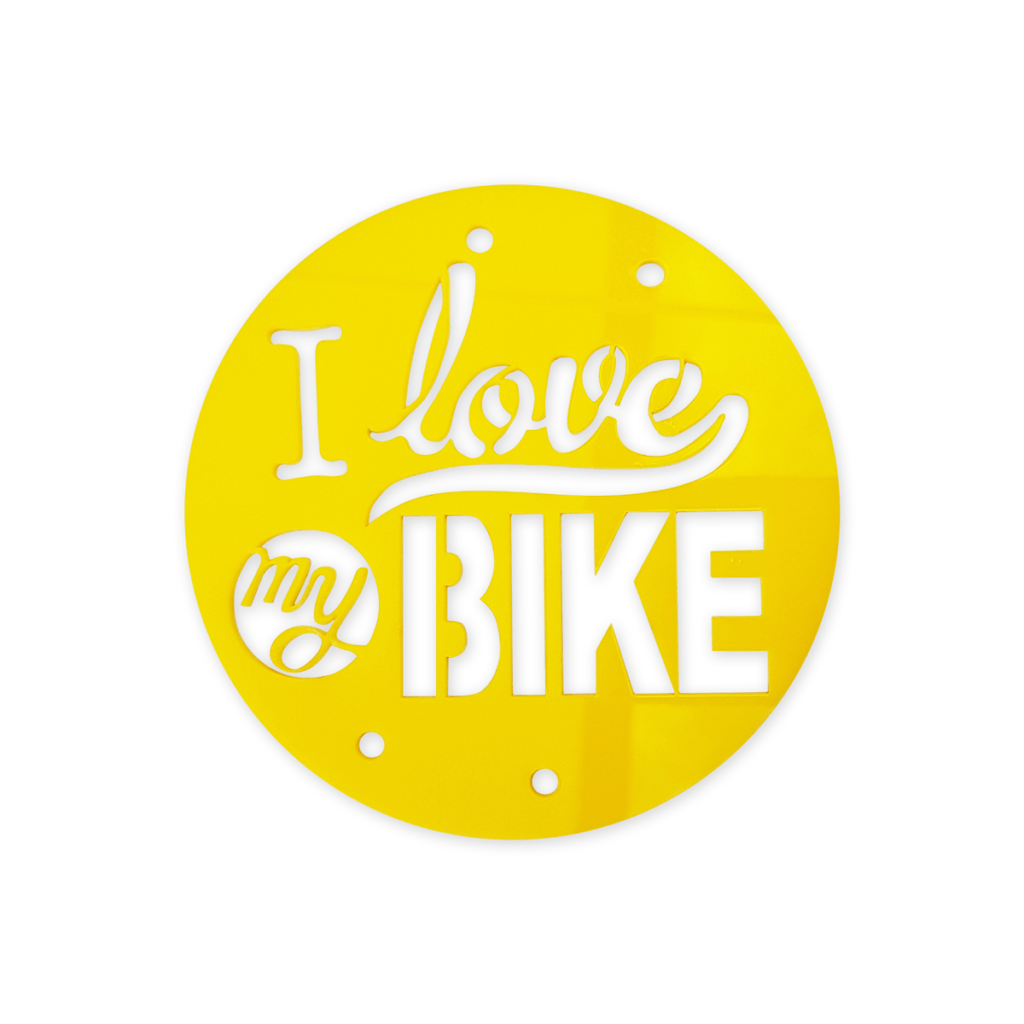 Dale estilo a tu bicicleta con esta placa acrílica en corte láser con la inscripción ‘I love my bike’ la cual cuenta con amarres para que la coloques donde quieras.